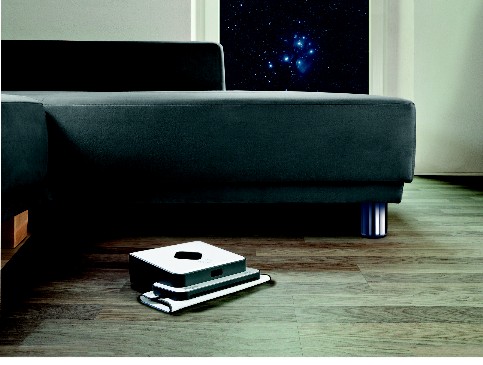 Działa dzięki wewnętrznemu modułowi GPS i projekcji podczerwonej robot orientuje się w przestrzeni. Czyści nie tylko duże i proste powierzchnie ale także trudnodostępne miejsca pod meblami oraz krawędzie i narożniki przy ścianach.